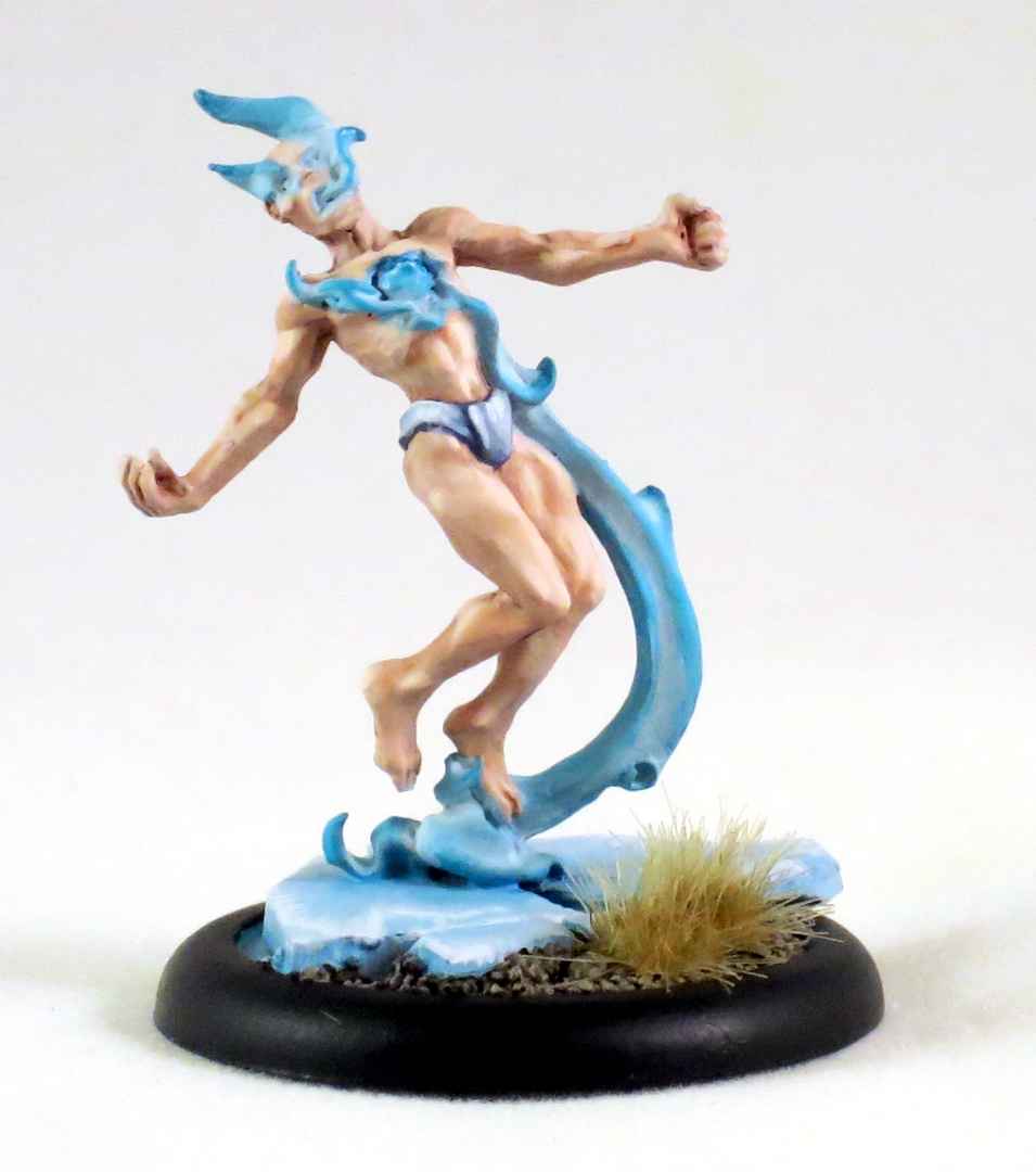 Gamin seem to give me the most trouble when it comes to color schemes. I painted these guys 3 different ways before I ended up with this very simple color palette. I used the same Reaper Master Series Paints (RMSP) that I used for the Ice Golem. Marine Teal, Surf Aqua, Ghost White and then a light wash of Games Workshop Asurman Blue.