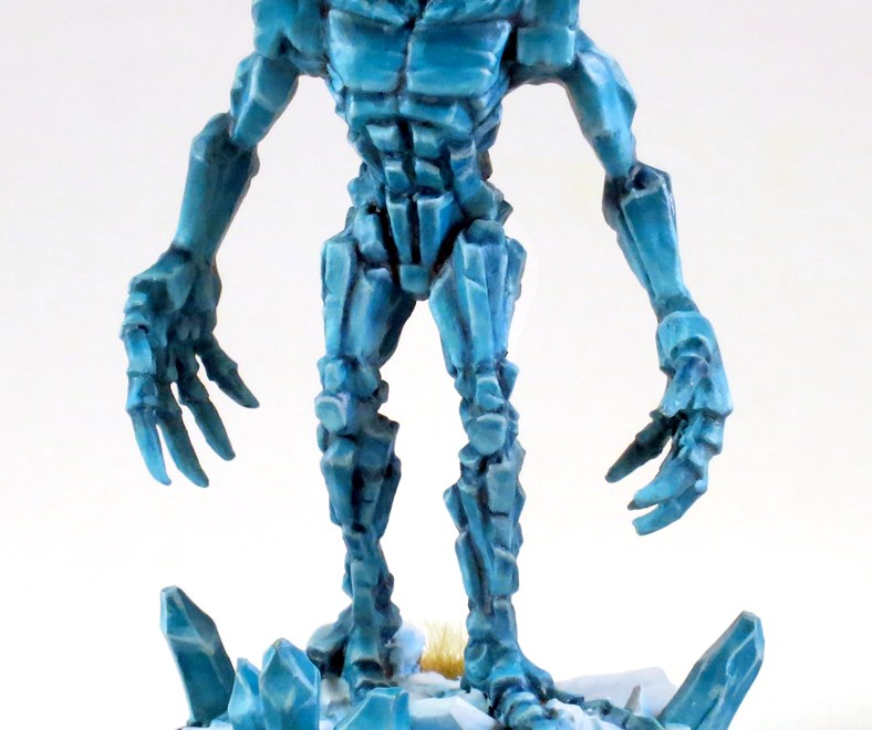 This is my first attempt at painting ice and I really like the way it turned out. The basic premise is to paint the model the opposite way you would normally. So, instead of darkest to lightest toward the light source you go lightest in the recesses and darker in the uppermost parts. I intend on doing a tutorial on this technique in the future with Avatar Rasputina.