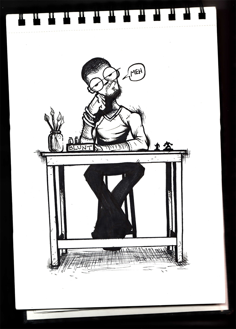 Then I got to thinking, “Hey, this blog is supposed to be about my minis and much, much more. Where’s the much more?” So here’s a little drawing I did to illustrate my funky state of mind.