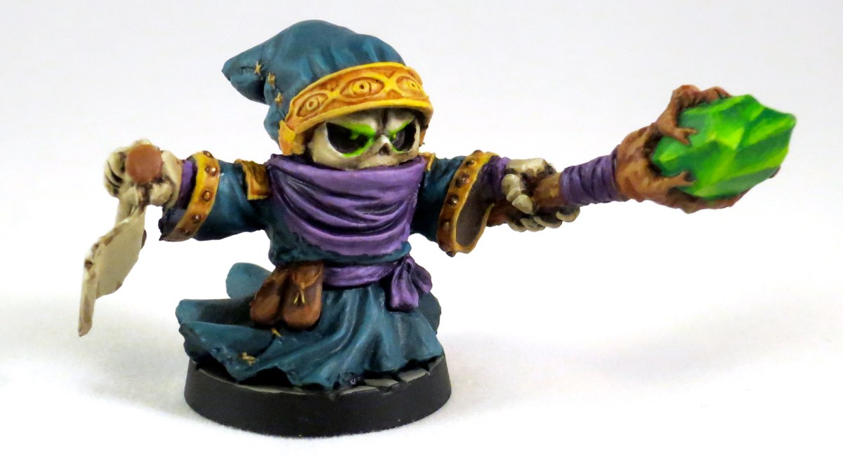Like this fella here, the Dust Mage. This was great to figure out my color palette. There’s something about secondary colors (orange, green, purple) together that scream Halloween to me. So that’s where I’m going with this set. Lot’s of bright colors balanced with warm earth tones.