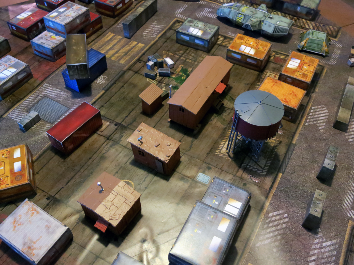 All the terrain on this table was made using paper print outs that I cut out and glued together. With a little help from my wife I was able to finish it all in about three nights. This terrain’s a great solution for anybody that has a tight budget and some time to spare. It’s also very easy to store away, just roll up the streets and stack the buildings in a shoe box. Eventually, I’d like to build a themed table with a greater variety of elements like multi story buildings, vehicles and lots of cover. While I figure out what I want that final table to look like, this terrain will do the job nicely.