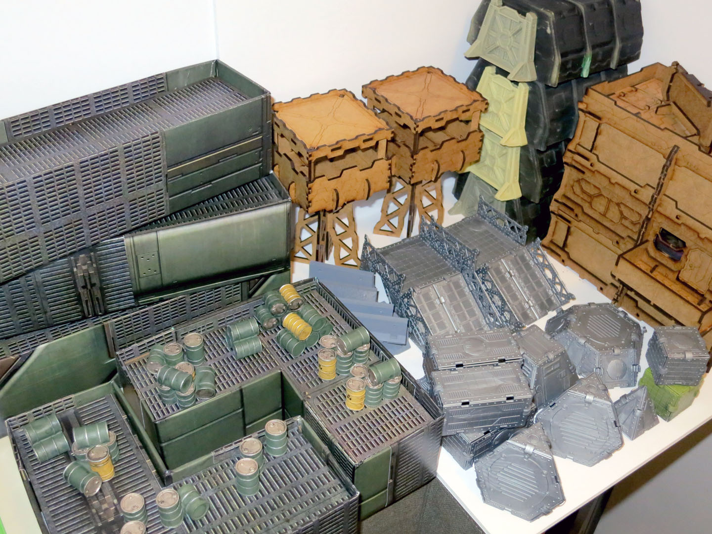 My Infinity terrain collection is complete, for now. I tried to fit all my stuff in this picture. Mixed in with some paper terrain odds and ends, this makes for a great amount of coverage on the table. Obviously I have a lot of painting lined up for me, but so is life as a miniature gamer.