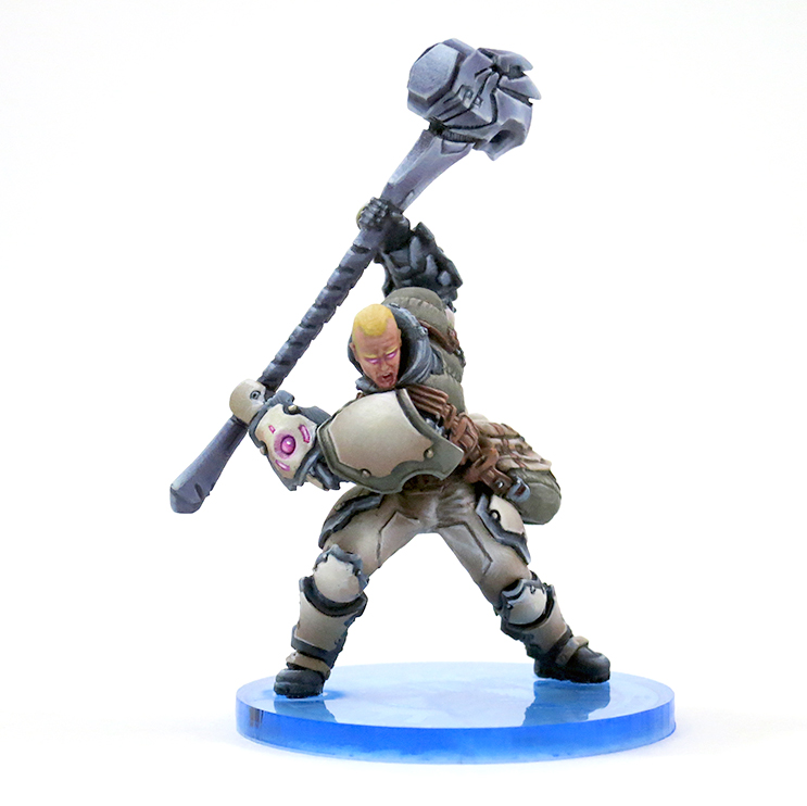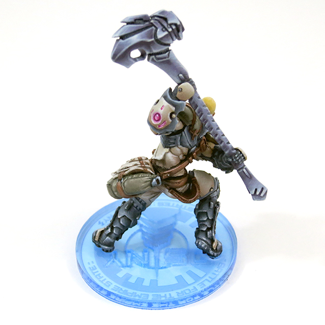 I got to try out a lot of new techniques on this model. First off, I applied almost all the khaki with my airbrush. I still need a lot of practice for anticipating where the paint will come out from the gun, but the final results worked out great. This is also my first attempt at painting metals without using metallic paint. Also known as non-metalic metal (NMM), this technique is something that I’ve never been a very big fan of, but tried it here because it’s more reminiscent of the studio Infinity models. I have to admit, I really enjoyed painting the metal like this and will definitely use it more often in the future. Finally, I’ve never attached a model onto an acrylic base before, but it’s pretty straight forward. 🙂